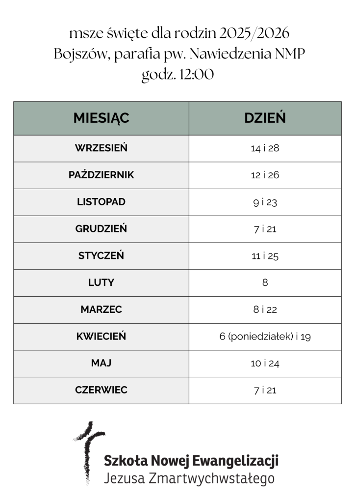 Zaczynamy już 5 rok wspólnym mszy świętych dla rodzin w Bojszowie! 😍 Piękny czas wzrostu, doświadczeń Bożej obecności, zadań i wyzwań rodzinnych, a to wszystko wokół stołu eucharystycznego.