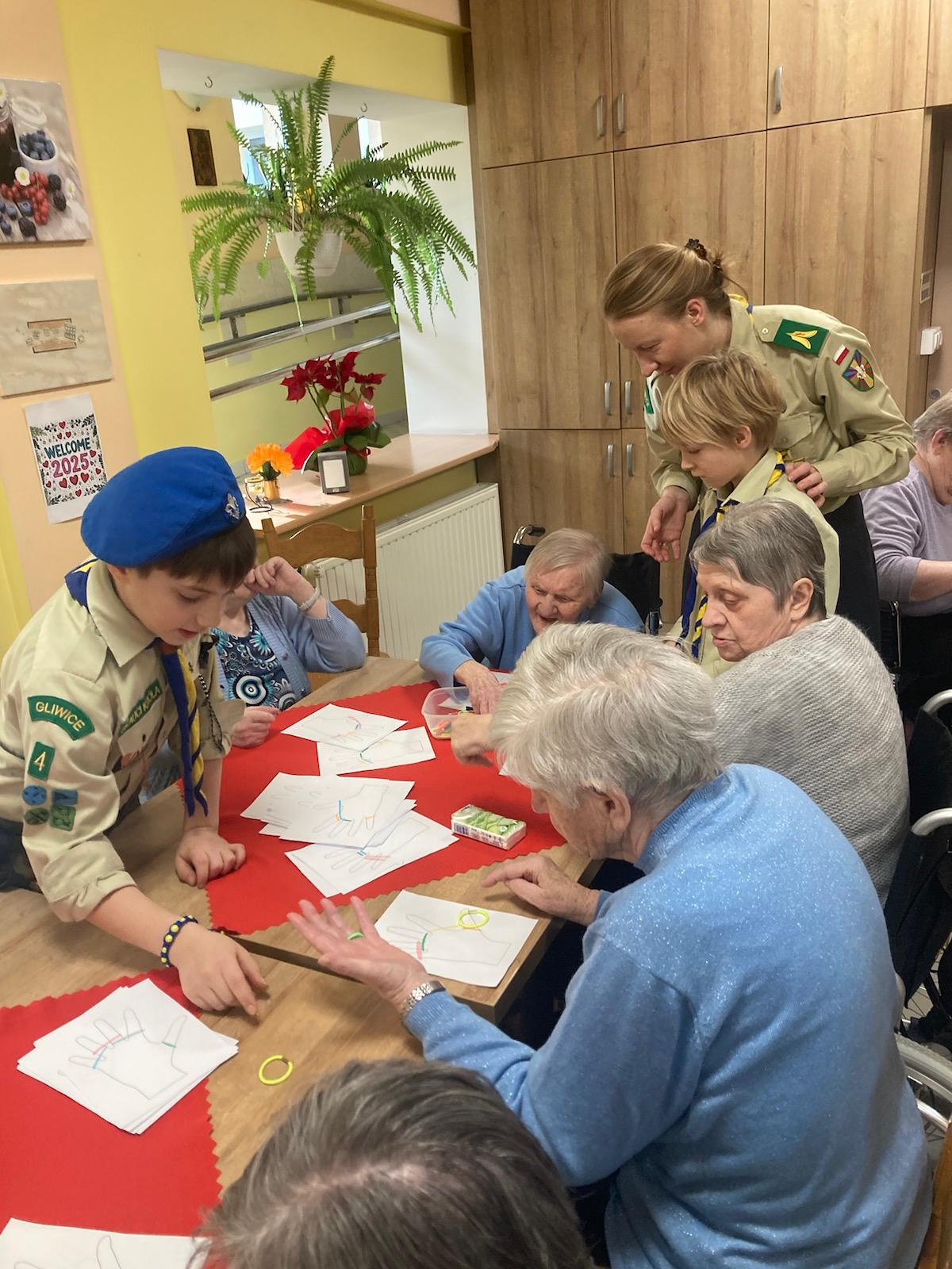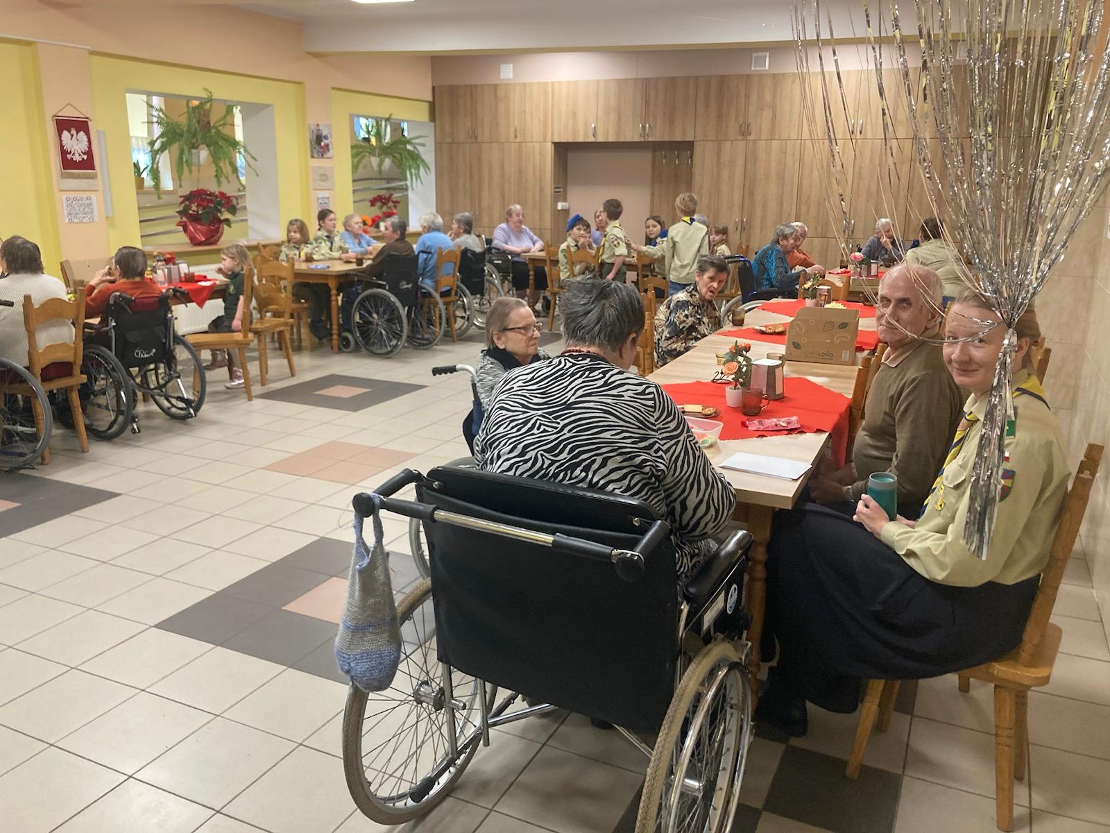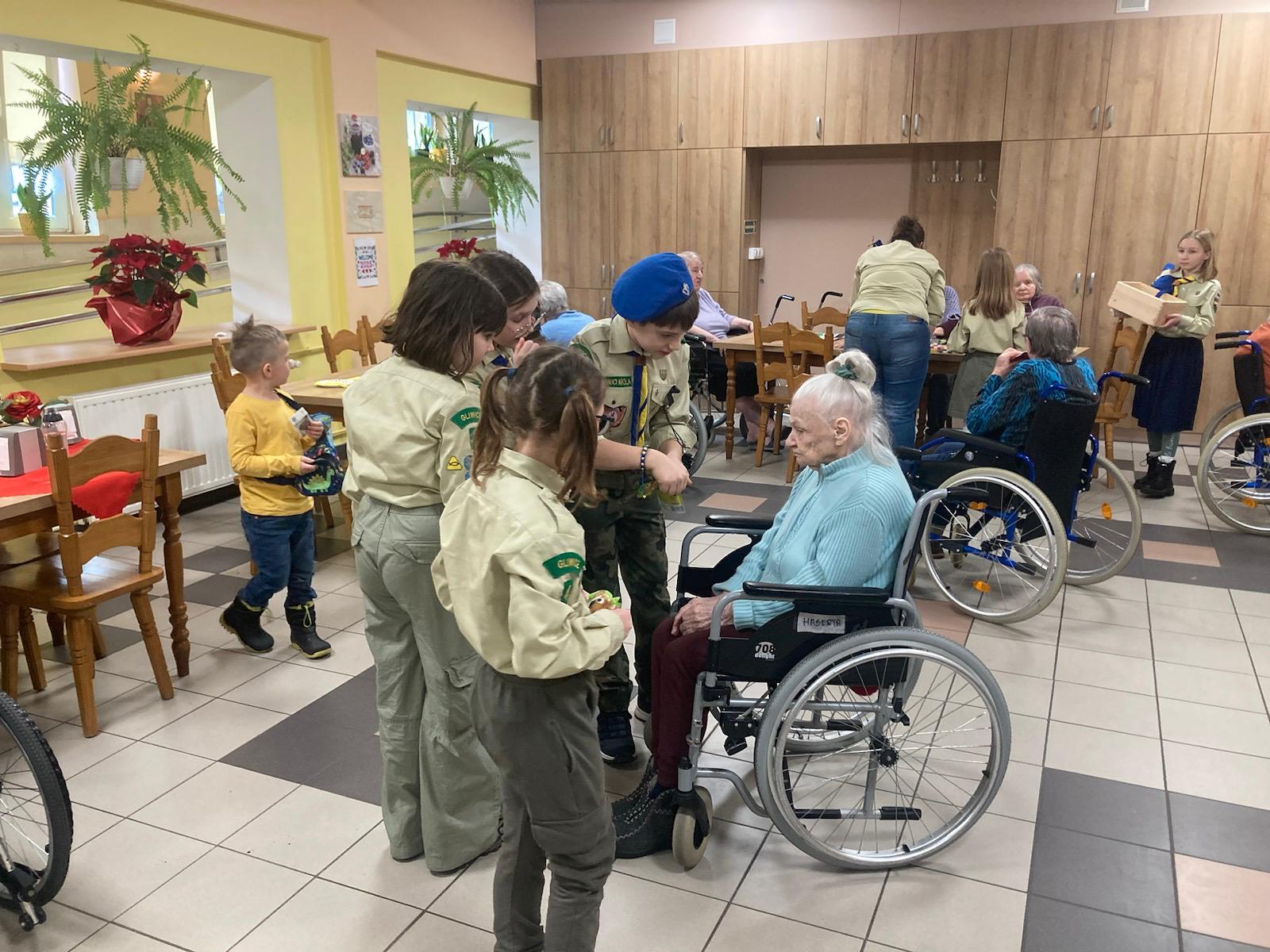 Druga zbiórka odbyła się już w Zabrzu, w DPSie, do którego poszliśmy jako Pielgrzymi Nadziei, jako ci, którzy chcą nieść radość i otwartość. Skauci poprowadzili wspólne zabawy z mieszkańcami wspomnianego domu. To spotkanie przyniosło nam wiele wzruszeń i pięknych wspomnień. A jako kontynuację zbiórki wprowadzającej – skauci za swoje kieszonkowe, jako troskę o innych, kupili dla każdego mieszkania mały upominek.