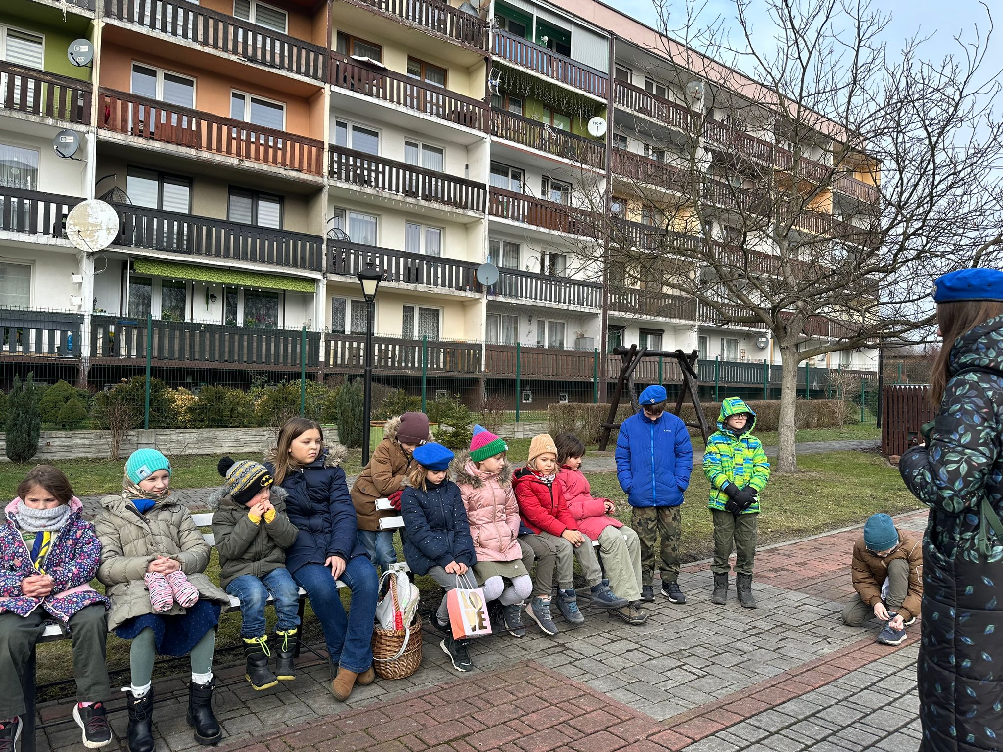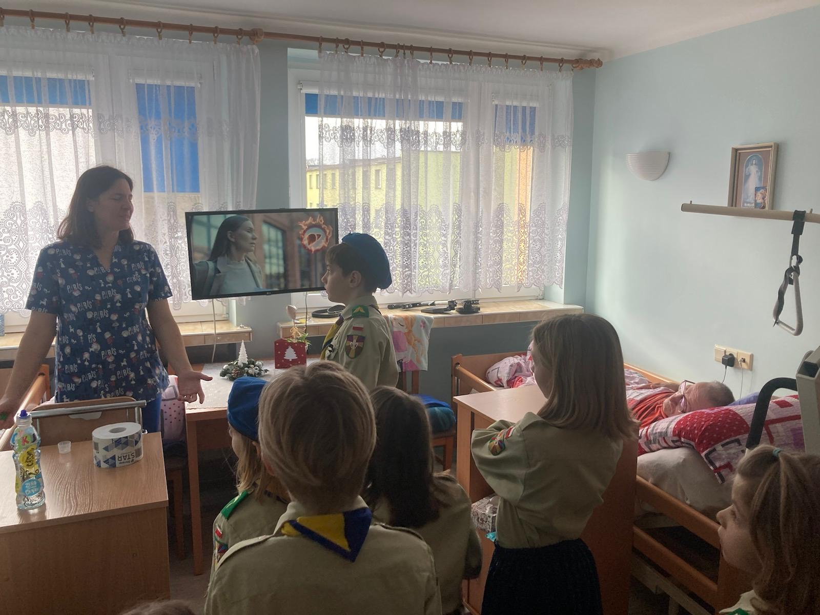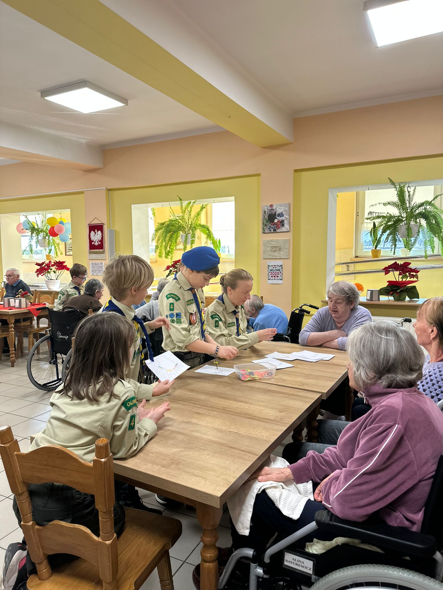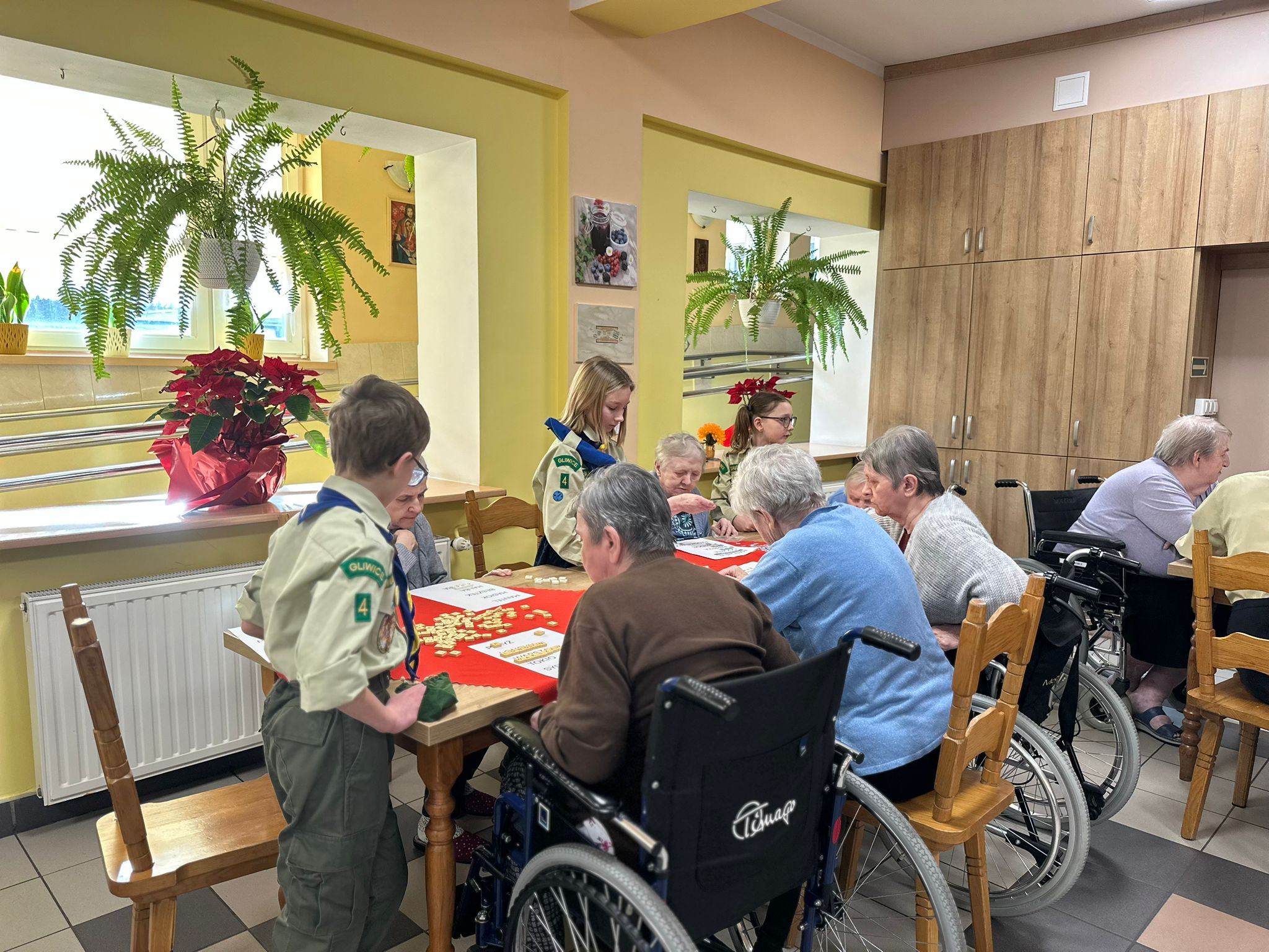 Druga zbiórka odbyła się już w Zabrzu, w DPSie, do którego poszliśmy jako Pielgrzymi Nadziei, jako ci, którzy chcą nieść radość i otwartość. Skauci poprowadzili wspólne zabawy z mieszkańcami wspomnianego domu. To spotkanie przyniosło nam wiele wzruszeń i pięknych wspomnień. A jako kontynuację zbiórki wprowadzającej – skauci za swoje kieszonkowe, jako troskę o innych, kupili dla każdego mieszkania mały upominek.